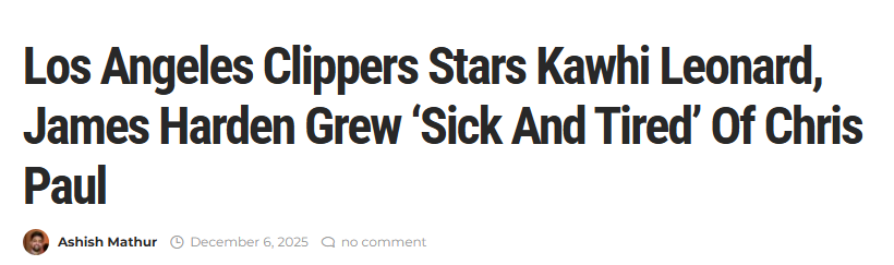 北京时间12月7日,据NBA记者Mathur报道,消息人士透露,快船队球星莱昂纳德和哈登早已对保罗“心生厌烦”。
